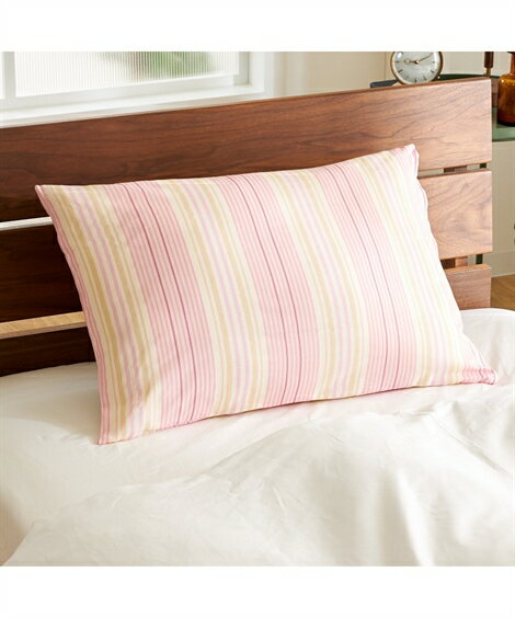 綿混 ストライプ柄 枕 カバー ファスナー式 グリーン系/サックス系/ピンク系/ブラウン系 ピロー43×63cm ニッセン nissen
