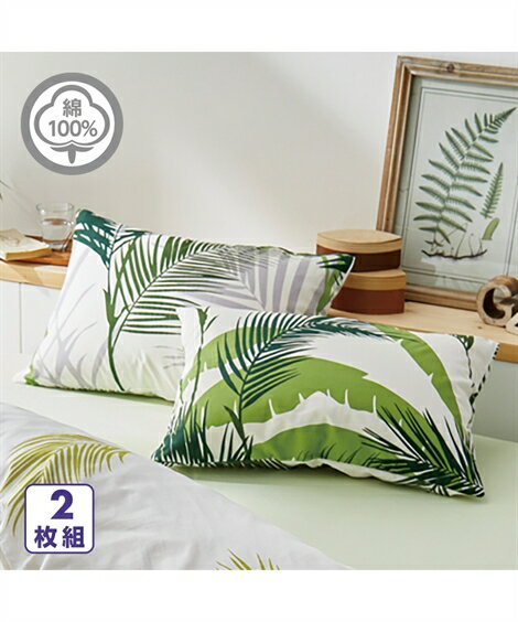 綿100% トロピカルリーフ柄 枕 カバー 同色2枚組 合わせ式タイプ 布団 グリーン系/グレージュ系 ピロー43×63cm ニッセン nissen