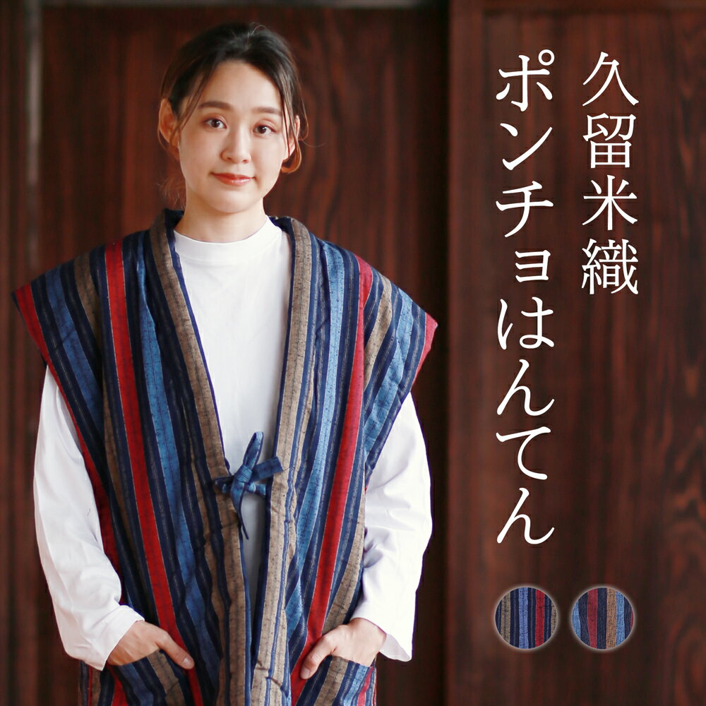久留米織 はんてん ポンチョ 袖なし 日本製 レディース 【 半纏 女性 部屋着 ルームウェア 袢纏 ちゃんちゃんこ どてら 暖かい 冬 縞 久留米はんてん フリー 中綿 中わた 女性 婦人 ギフト プレゼント 綿100% 綿 コットン 】