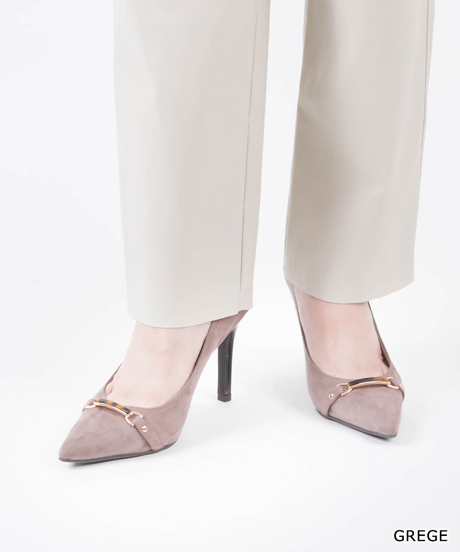 リズ ラフィーネ Riz raffinee 【3E】クリスタルストーンデザインパンプス (ワインメタリック)