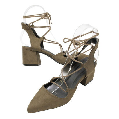 【アウトレット】ティティベイト titivate レースアップポインテッドトゥヒールパンプス (カーキ)