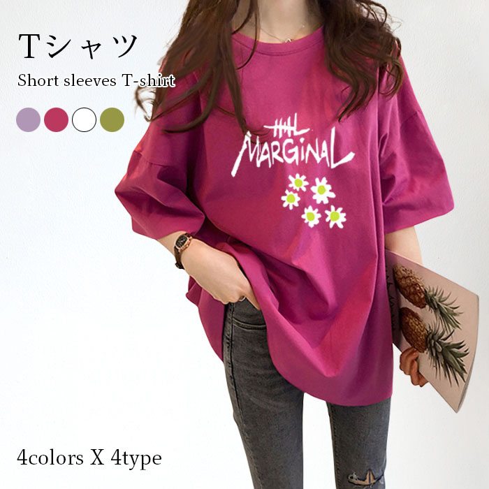 【ネコポス送料無料】カットソー レディース Tシャツ 体型カバー ゆったり ゆるTシャツ 半袖 ドロップショルダー ラウンドネック 柄Tシャツ 薄手 ラウンドネック クルーネック トップス プルオーバー 春 夏 春新作