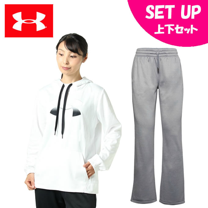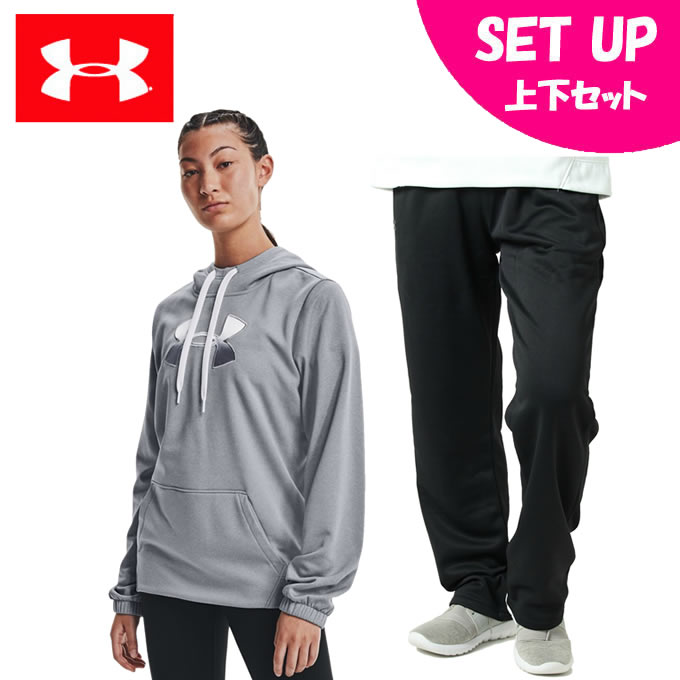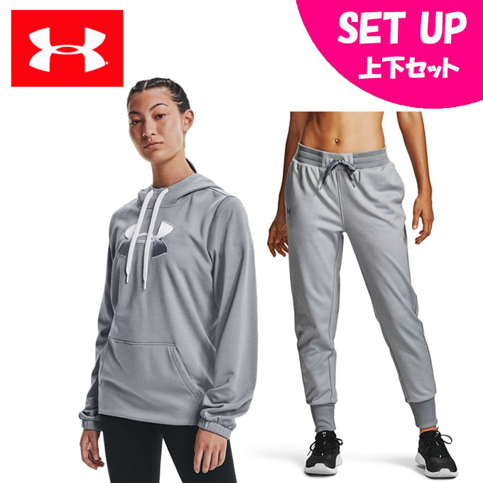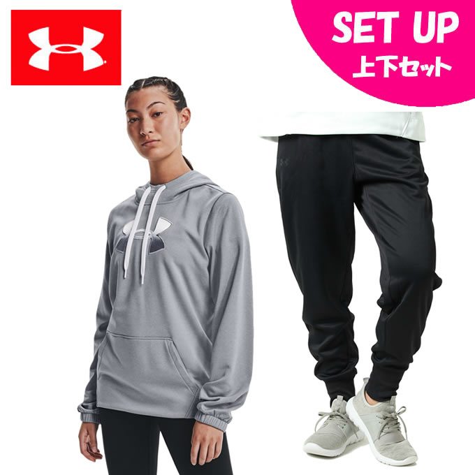 アンダーアーマー スウェットウェア上下セット レディース UAアーマーフリース ビッグロゴ フーディー+ジョガー 1365910-035+1356415-035 UNDER ARMOUR