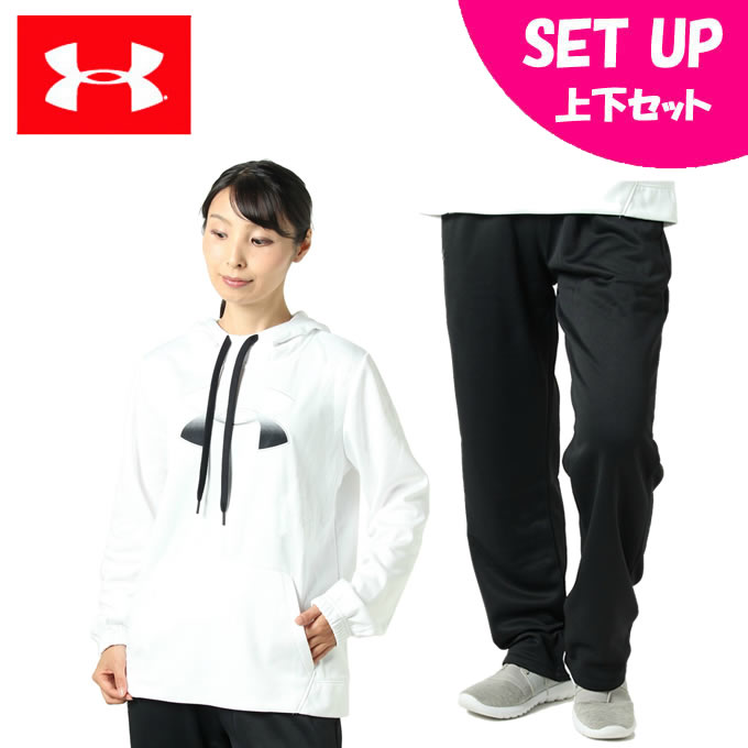 アンダーアーマー スウェットウェア上下セット レディース UAアーマーフリース ビッグロゴ フーディー+パンツ 1365910-035+1356415-001 UNDER ARMOUR