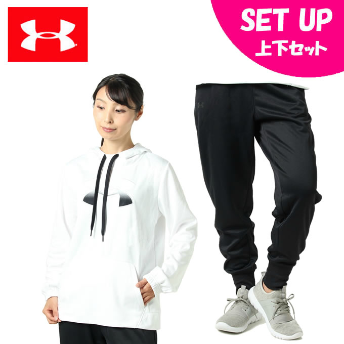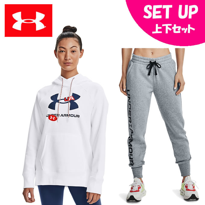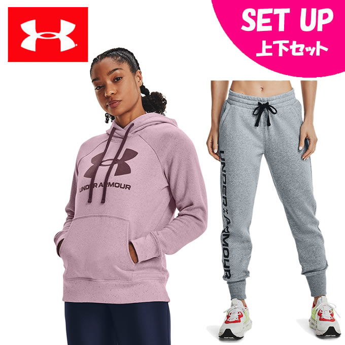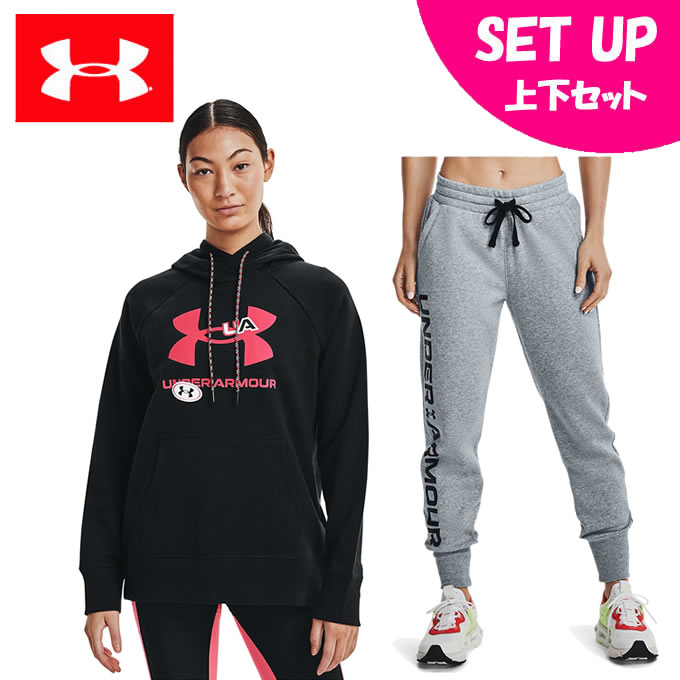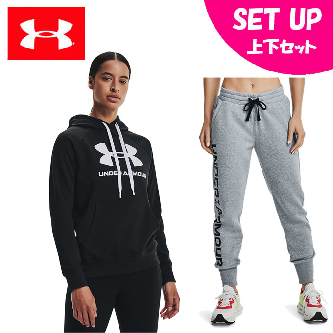 アンダーアーマー スウェットウェア上下セット レディース UAライバルフリース ロゴフーディー+ジョガー 1356318-001+1370844-035 UNDER ARMOUR