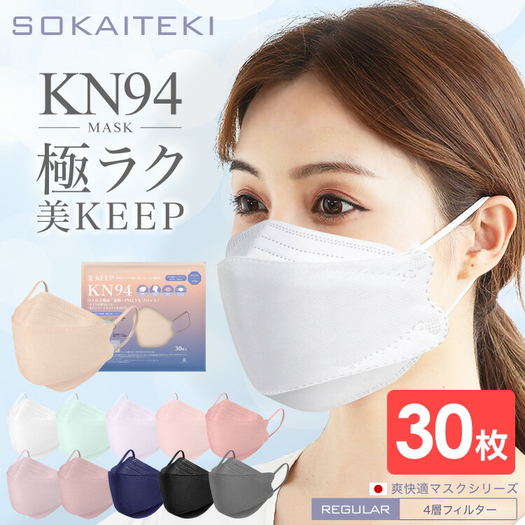 マスク 不織布 立体 カラー 子供 立体マスク 小さめ KN94 マスク 30枚 不織布 不織布マスク と同型 口紅がつきにくい カラー フラップ 日本 企画 大人 やわらか 夏 個包装 爽快適 韓流マスク 大人用マスク ギフト 送料無料 敬老の日